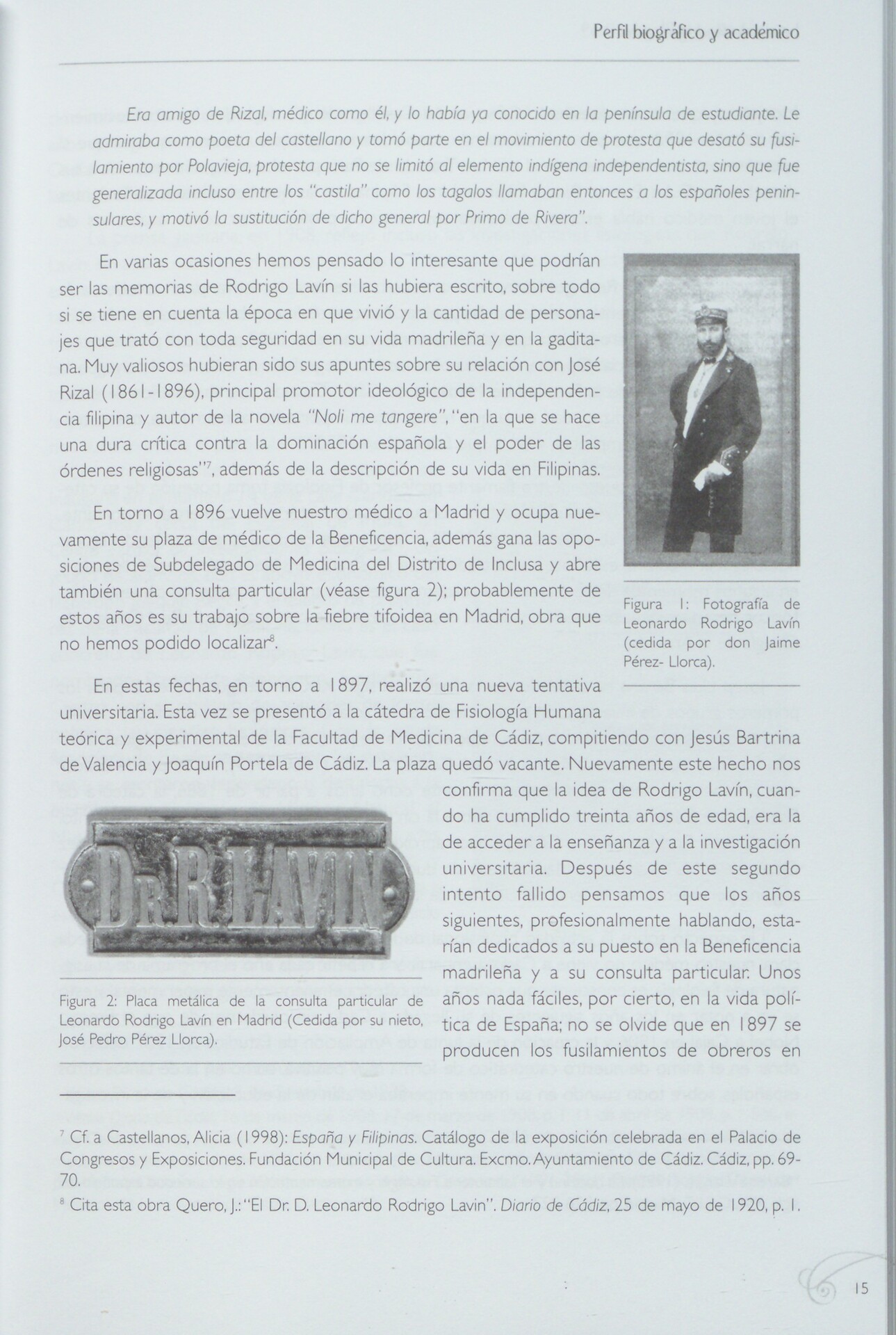 En su conjunto este libro está parcelado en varios apartados, en el primero un denso perfil biográfico y académico del personaje; luego se procede al estudio de su obra de carácter sanitario; en un tercer momento se acerca a su labor profesional en los años treinta hasta la Guerra Civil, tras la que fue sometido a un proceso de depuración. Como colofón un interesante apartado de apéndices documentales sobre sus obras dedicadas a la salud pública gaditana.