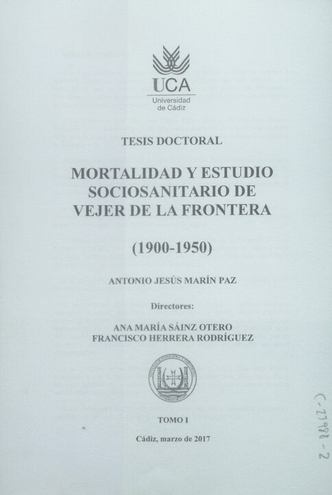 Mortalidad y estudio sociosanitario en Vejer de la Frontera (1900-1950)