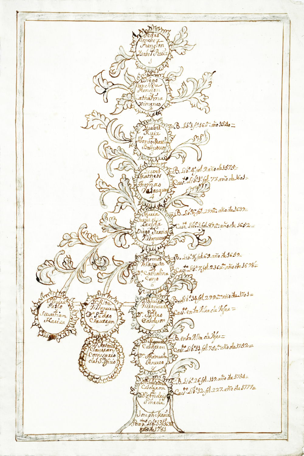 Árbol genealógico en información de limpieza de sangre de Andrés Pineda, vecino de la Villa de Chiclana. 1785-1803.
