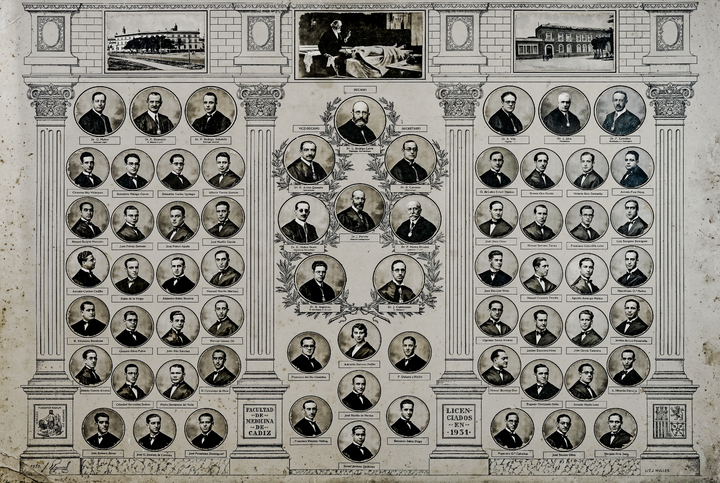 Orla académica de la Facultad de Medicina en Cádiz (Universidad de Sevilla) del año 1931